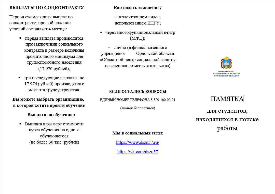 Информация для студентов, находящихся в поиске работы